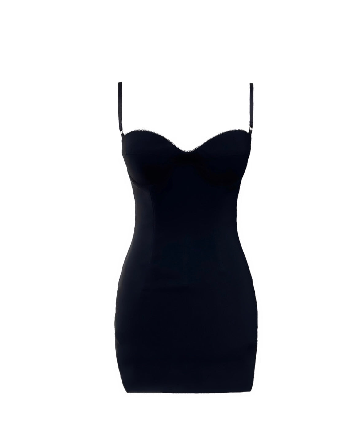 Introducing our Bustier-Top Dress, fusing Swedish design simplicity with a chic silhouette. This figure hugging dress compliments the style of many 90s runway icons.