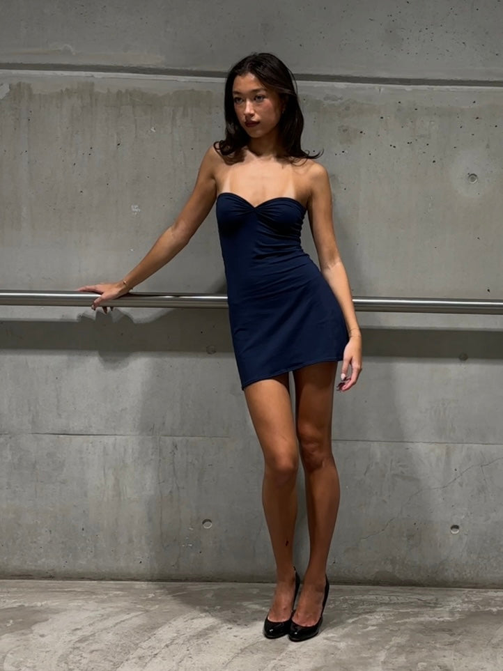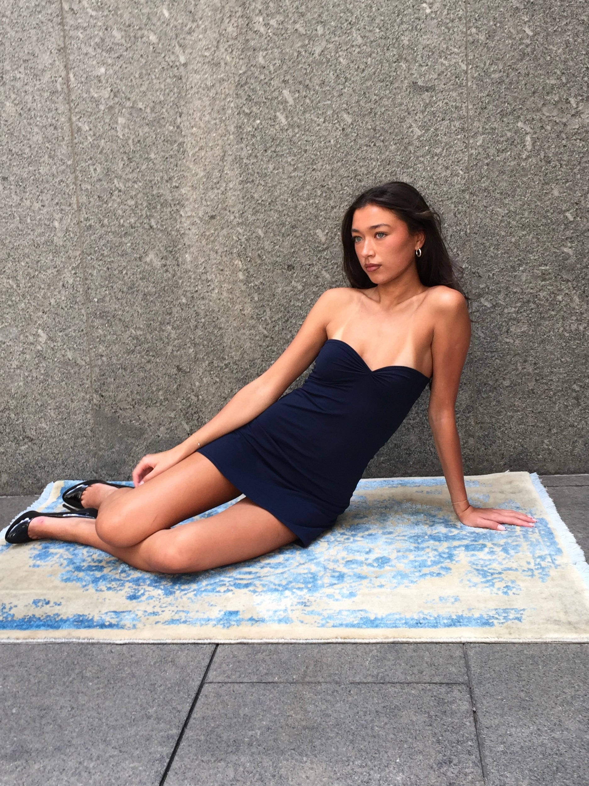Handcrafted locally out of a thick navy jersey, the Odessa dress is an absolute doll.